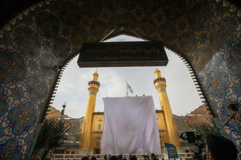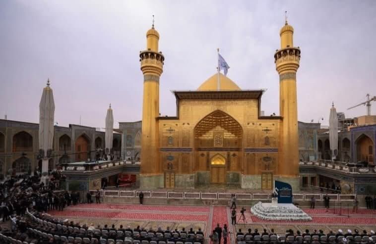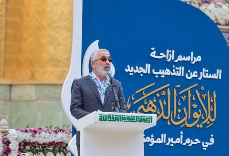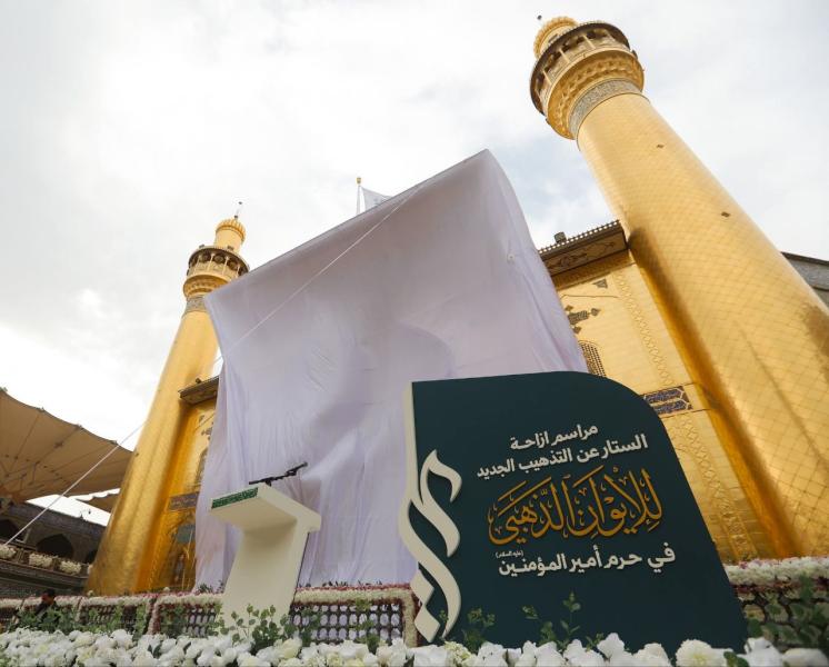 العلوية المقدسة بمناسبة إزاحة الستار عن تجديد تذهيب إيوان الذهب