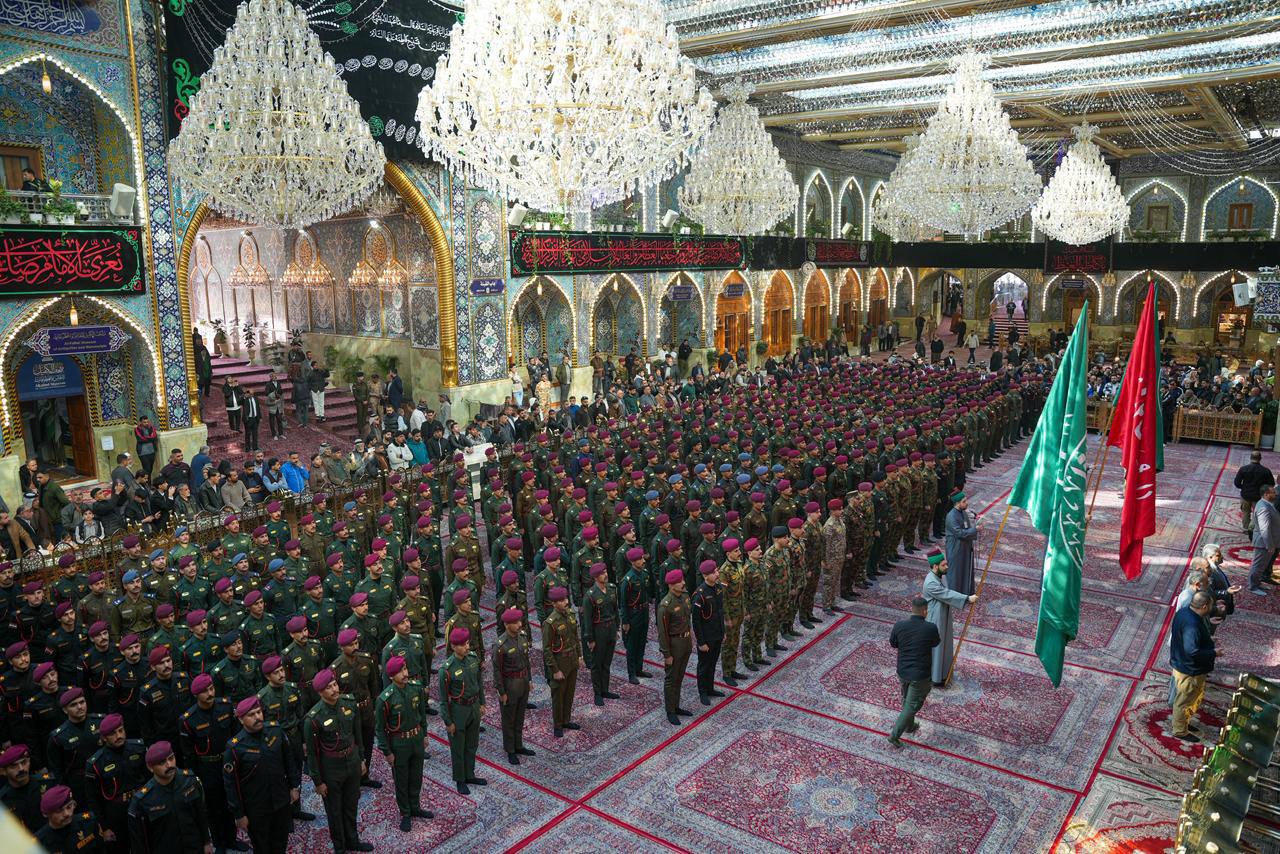 بحضور قيادة فرقة العباس القتالية.. ضباط الدورة (89) يؤدون القسم في رحاب مرقد أبي الفضل العباس (ع)